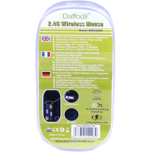 Daffodil WMS500R - Wireless Maus - Optische - 2.4Ghz - Batteriebetrieben (2xAAA batterien Inklusive) Spezifikation