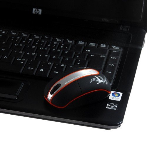 Optische 2,4 GHz Wireless 3D Maus der Marke Sharon mit einer Auflösung von 1000 dpi. Eine Verbindung der Maus zum Notebook erfolgt über einen 2,4 GHz Empfänger, der im Lieferumfang enthalten ist.