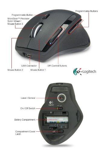 Logitech Maus MX1100 Laser Cordless Mouse rechargeable Beschreibung