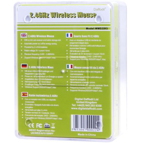 Daffodil WMS335G - Wireless Optische Maus - Funkmaus (2.4GHz) mit Scrollrad sowie Verstellbarer Abtastrate (bis 2000 DPI) - Energiesparend AVAGO 5090 Steurungschip - Farbe Grau Spezifikation