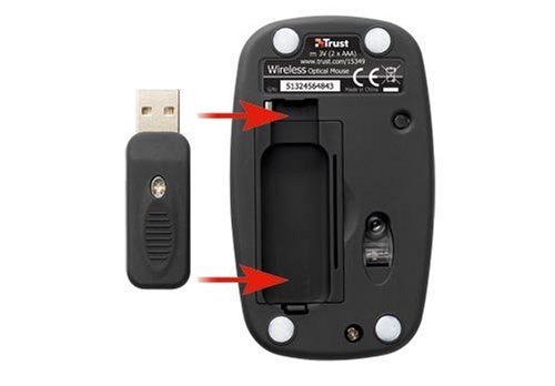 - Kompakte optische Funkmaus mit kleinem USB-Empfänger (in der Maus verstaubar)
